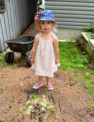 Finn and Flora met the yard rabbits and started the calls out "Bunny Alert!"